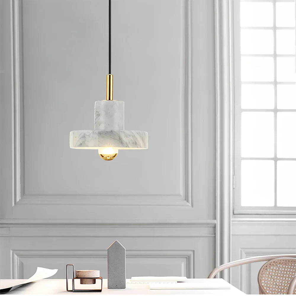 The Aureno Marble Pendant Light combines natural marble with sleek metal for a refined and timeless look. Its integrated LED light source produces a warm 3000K glow, making it ideal for kitchens, dining areas, or modern living spaces. With an adjustable 150 cm suspension cable, the Aureno adapts to different ceiling heights and layouts. Compact in size yet full of character, this pendant light is perfect for adding elegance and atmosphere to both contemporary and classic interiors.