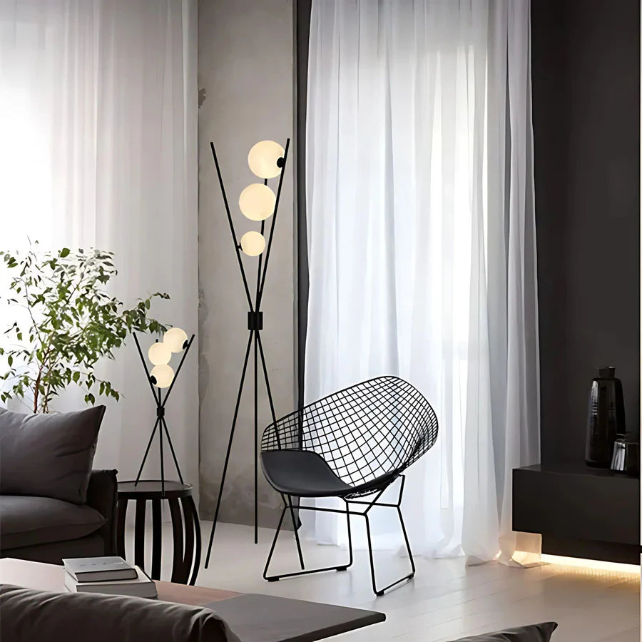 The Bolani Floor Lamp combines sculptural design with modern functionality, making it a standout addition to any living space. Featuring three frosted glass globes arranged across sleek black supports, this lamp diffuses a warm, soft glow ideal for living rooms, bedrooms, or lounges. Its energy-efficient LED system provides ambient light while maintaining a minimalist style that pairs perfectly with contemporary interiors. With easy self-assembly, the Bolani Floor Lamp is both practical and visually striking, designed to elevate your home décor with refined simplicity.