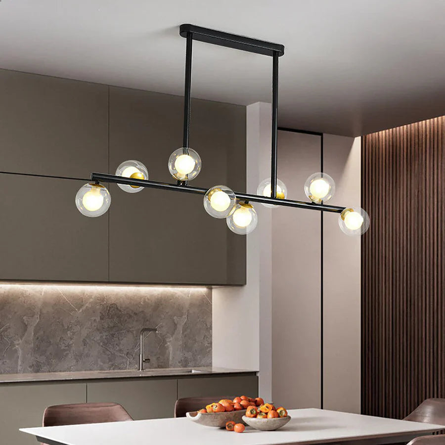 The Belvion Pendant Light is a striking modern pendant designed to enhance dining rooms, kitchen islands, and living spaces with style and functionality. Crafted from glass and metal, it combines durability with a contemporary edge. Its linear design with multiple light points creates an even and inviting glow, making it ideal for illuminating areas of 10 to 15 m². Available in versions with 6, 8, or 10 lights, it allows you to choose the perfect size for your room. Compatible with G9 LED bulbs (not included), this pendant light is both practical and easy to install.